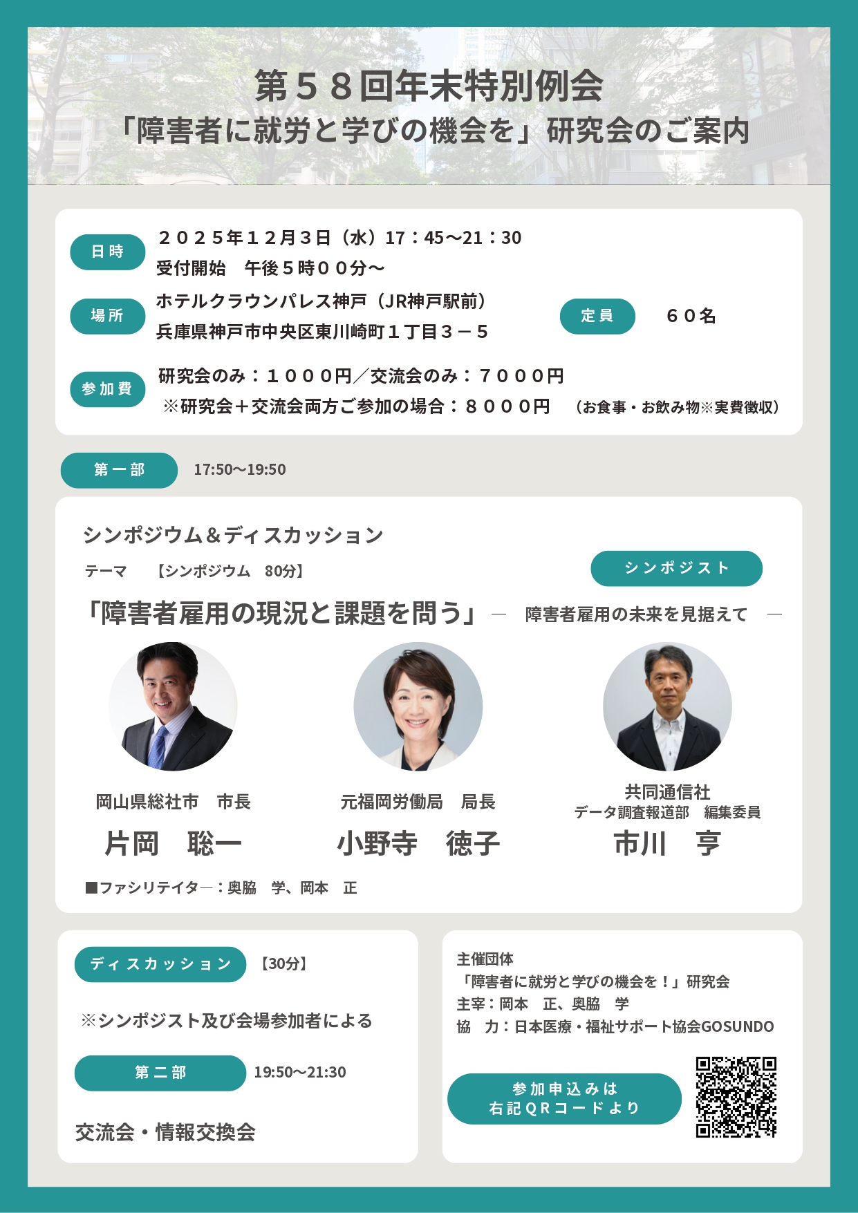第58回年末特別例会「障害者に就労と学びの機会を!」研究会